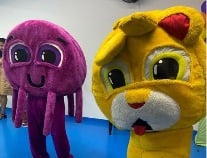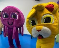 Atores fantasiados que encantam e interagem com a criançada.